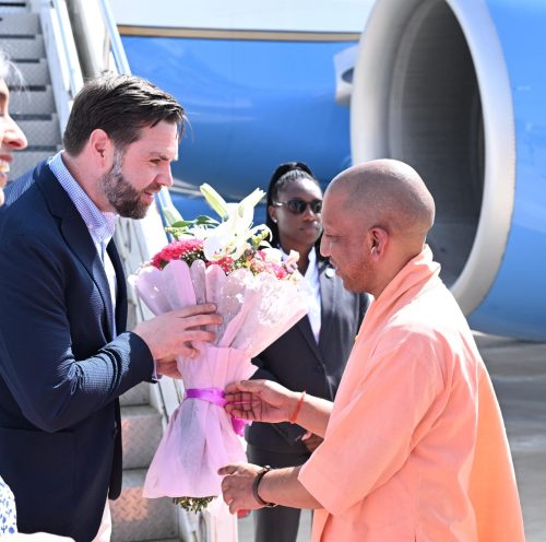 खेरिया एयरपोर्ट के तकनीकी क्षेत्र में अमेरिकी विमान के उतरते ही उत्तर प्रदेश के मुख्यमंत्री योगी आदित्यनाथ ने वेंस का गर्मजोशी से स्वागत किया। उनके साथ आगरा एयरफोर्स स्टेशन के एयर कमोडोर भी मौजूद रहे। सीएम योगी ने वेंस को फूलों का गुलदस्ता भेंट कर उनका स्वागत किया।