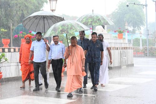 गोरखनाथ मंदिर प्रवास के दौरान शनिवार सुबह तेज बारिश का मुख्यमंत्री योगी आदित्यनाथ की दिनचर्या पर कोई प्रभाव नहीं पड़ा। खराब मौसम में भी वह गुरु गोरखनाथ का दर्शन-पूजन और अपने गुरुदेव ब्रह्मलीन महंत अवेद्यनाथ की प्रतिमा समक्ष शीश झुकाने के बाद मंदिर परिसर का भ्रमण कर व्यवस्थाओं का जायजा लेने निकले।