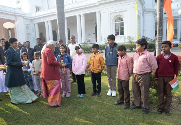 उत्तर प्रदेश की राज्यपाल आनंदीबेन पटेल ने 77वें गणतंत्र दिवस के पावन अवसर पर आज जन भवन, लखनऊ में राष्ट्रीय ध्वज फहराया। इस अवसर पर उन्होंने जन भवन में उपस्थित सभी अधिकारियों, कर्मचारियों और सुरक्षाकर्मियों को गणतंत्र दिवस की हार्दिक शुभकामनाएं दीं तथा बच्चों को मिष्ठान वितरित किया।