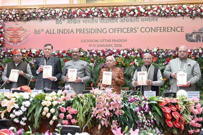 उत्तर प्रदेश की राज्यपाल आनंदीबेन पटेल ने आज विधानसभा, लखनऊ में 19 से 21 जनवरी 2026 तक आयोजित अखिल भारतीय 86वें पीठासीन अधिकारियों के सम्मेलन का उद्घाटन किया। इस अवसर पर देश के विभिन्न राज्यों से पधारे विधानमंडलों के पीठासीन अधिकारियों, जनप्रतिनिधियों एवं गणमान्य अतिथियों का स्वागत करते हुए उन्होंने इसे भारतीय संसदीय परंपराओं की सुदृढ़ता, मर्यादा और निरंतरता का जीवंत प्रतीक बताया।