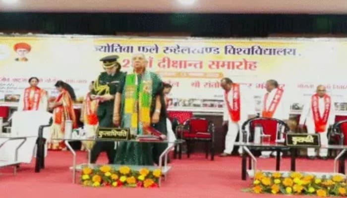 बरेली में महात्मा ज्योतिबा फुले रुहेलखंड विश्वविद्यालय का 23वां दीक्षांत समारोह गुरुवार को आयोजित किया गया। जहां इस बार समारोह में 111 शोधार्थियों को PHD की उपाधि और 94 टॉपर्स को GOLD MEDAL से सम्मानित किया गया। इस कार्यक्रम में यूपी की राज्यपाल और विश्वविद्यालय की कुलाधिपति आनंदीबेन पटेल मुख्य अतिथि के रूप में शामिल हुई।