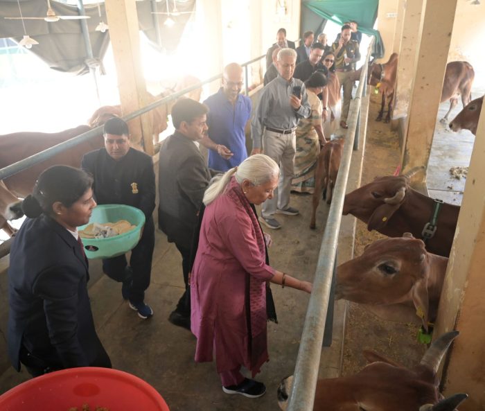 इस अवसर पर राज्यपाल ने गौशाला में मौजूद गायों के स्वास्थ्य की जानकारी ली और अधिकारियों को स्वच्छता, समय पर खानपान तथा नियमित देखरेख सुनिश्चित करने के निर्देश दिए। उन्होंने गौशाला परिसर में चल रहे निर्माण कार्यों का निरीक्षण भी किया और आवश्यक सुधारों के निर्देश दिए।