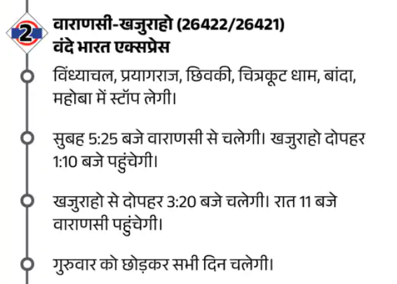 प्रधानमंत्री नरेंद्र मोदी ने शुक्रवार को काशी से चार वंदे भारत एक्सप्रेस ट्रेनों को हरी झंडी दिखाई, जिनमें वाराणसी-खजुराहो, फिरोजपुर-दिल्ली, एर्नाकुलम-बेंगलुरु और लखनऊ-सहारनपुर रूट शामिल हैं।